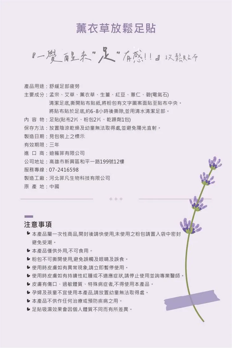 內容物:足貼(貼布2片、粉包2片)、乾躁劑1包