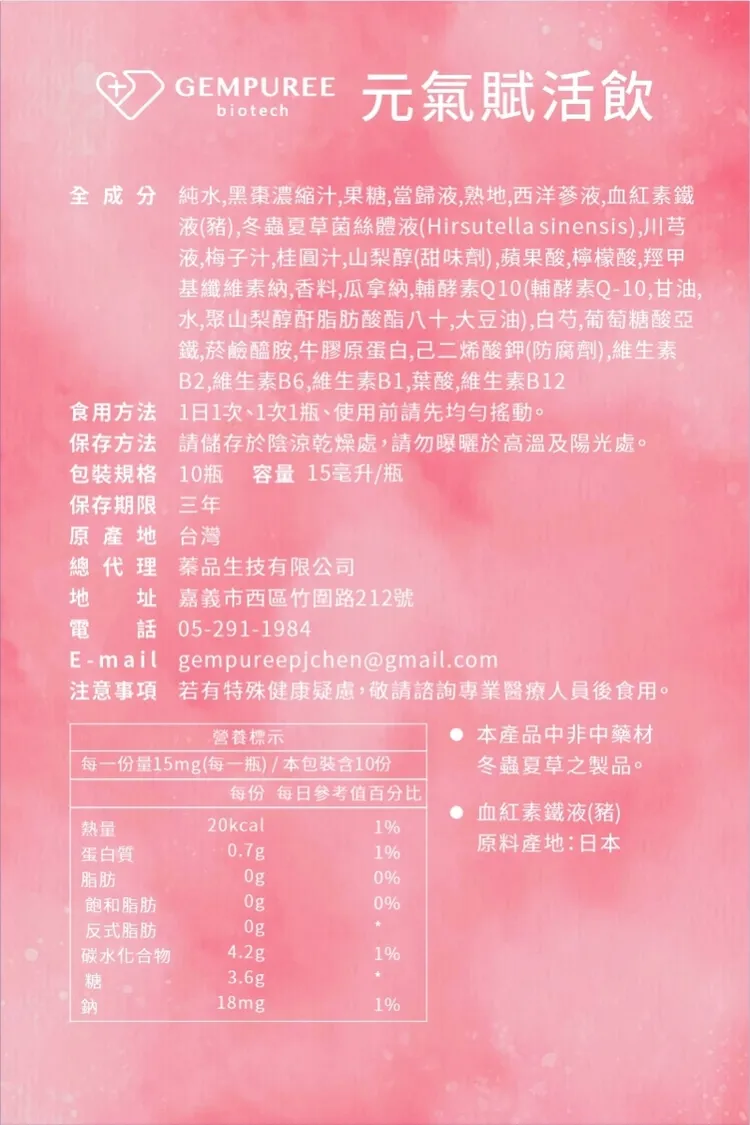 成分除了當歸液、西洋參、黑棗,含有豐富的B群,B1、B2、B6、B12通通有。