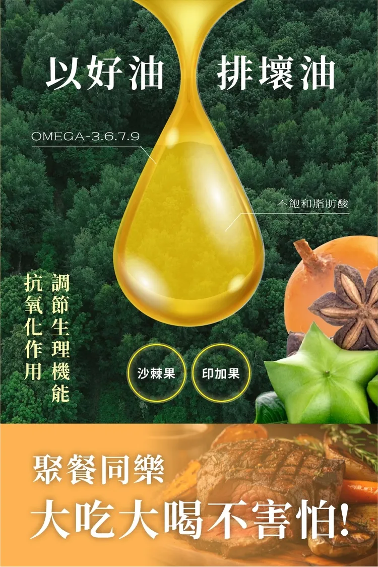 含有Omega-3、Omega-6、Omega-7、Omega-9,讓你一顆就實現Omega自由。